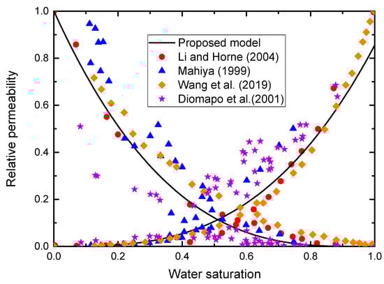 - Li, Y.; Li, X.; Teng, S.; Xu, D. Improved models to predict gas–water relative permeability in fractures and porous media. J. Nat. Gas Sci. Eng. 2014, 19, 190–201. [Google Scholar] [CrossRef]