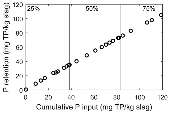 However, TP concentrations in the range of 2 to 6 mg P/L were observed at the effluent of field scale slag filters fed with the effluent of constructed wetlands [15]. In these experiments, the pH at the effluent of filters was between 8 and 9, due to a short hydraulic retention time and possibly because of the exposure to atmospheric CO2. These results outline the need for a pH above 10 at the effluent of an alkaline slag filter to reach a low TP concentration.