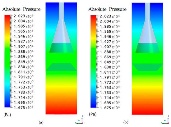 Pressure field inside the UASB reactor, considering the three-phase system: (a) deflection inclination upwards (b) deflection inclination downwards.