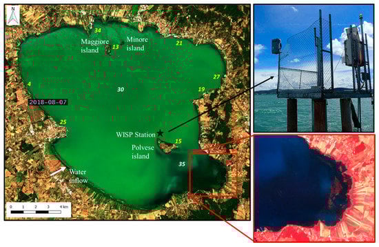 - Giardino, C.; Bresciani, M.; Villa, P.; Martinelli, A. Application of Remote Sensing in Water Resource Management: The Case Study of Lake Trasimeno, Italy. Water Resour. Manag. 2010, 24, 3885–3899. [Google Scholar] [CrossRef]