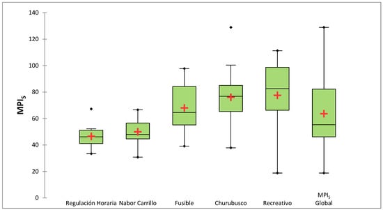 The ranking of water bodies based on MPIS is Recreativo > Churubusco > Fusible > Nabor Carrillo > Regulación Horaria (Figure 3). Recreativo also shows the highest metal concentration in sediments. Significant differences were observed between Recreativo and Churubusco relative to Regulación Horaria and Nabor Carrillo (Dunn’s p < 0.0003), and between Regulation Horaria and Fusible (Dunn’s p < 0.001).
