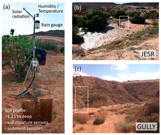 (a) Components of the measurement system; location in (b) the Jesr and (c) the gully. Photos: Martin Calianno.