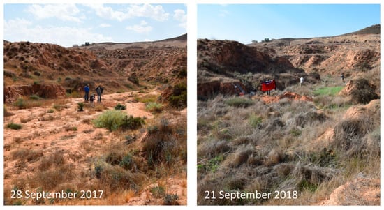 Difference in vegetation cover in the gully between 28 September 2017 and 21 September 2018. Photos: Martin Calianno.