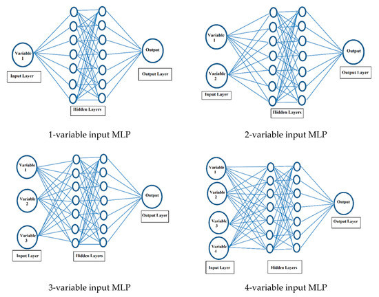 The multilayer perceptron (MLP) model for various input variable combinations.
