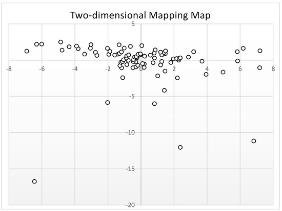 From the Table 2, we can see that when is used as the basic clustering algorithm, the clustering quality of the generated cluster members is better. It is because that the small- and medium-sized watershed data set used as the experimental input contains some noise points. We verify that the 27-dimensional small and medium watershed data set is reduced to a two-dimensional data set and then mapped to the map through MDS. For details, see Figure 6 below. This experiment can explain that the special performance of not affected by noise points improves the clustering quality of each cluster member in the clustering ensemble to some extent.