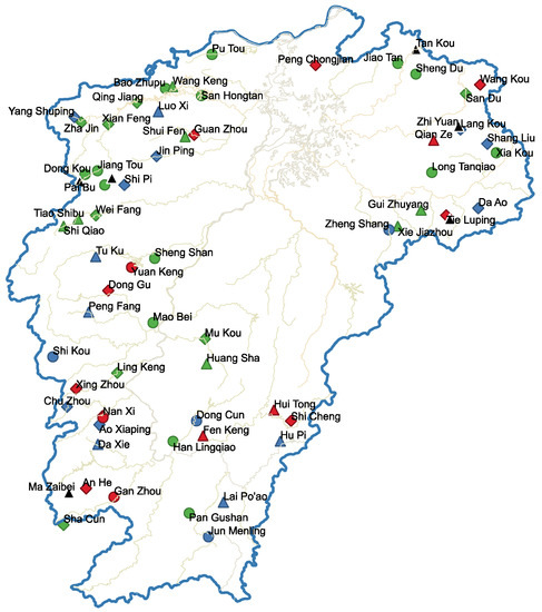 Figure 9 is the result of 69 small- and medium-sized watersheds similarity analysis based on clustering ensemble, and stations with the same color and shape are similar. The clustering integration method proposed in this paper can directly and effectively find out more similar basins.