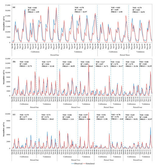 - Moriasi, D.N.; Arnold, J.G.; Van Liew, M.W.; Bingner, R.L.; Harmel, R.D.; Veith, T.L. Model evaluation guidelines for systematic quantification of accuracy in watershed simulations. Trans. ASABE 2007, 50, 885–900. [Google Scholar] [CrossRef]