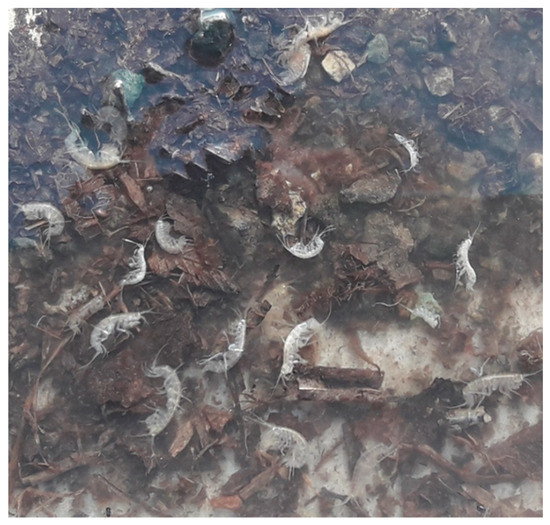 Example of high concentration of Niphargus sp. aff. puteanus observed at the springhead. This abundant presence of Niphargus was related to the pressure wave induced by the extreme event of 5 November 2016. The observation was made only three days later. The spring had been visited also shortly before the extreme rainfall (31 October 2016), and these organisms were not present. The size of this depigmented species ranges from a minimum of 3 mm to a maximum of 8 mm.