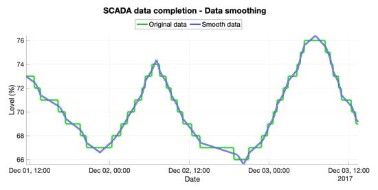 The first step consists of applying the Smoothing process described in the Section 3.3.1, which contributes to make the tensor decomposition a bit more effective. The tensor decomposition produces a continuous response. The sensor, however, measures the level as a percentage with resolution of 1%, providing a discrete signal of the deposit capacity. When the signal levels oscillate around the point of quantification, oscillations occur between adjacent discrete values. The Smoothing process is applied on the received data and corrects this effect.