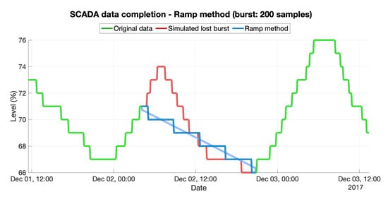 In the SCADA renewal process, great importance was given to preserving the data collected by the equipment to be replaced. To avoid the loss of information accumulated by the old SCADA system during the last four years, the data have to be imported from the old database to the new one. So, during this procedure, the historical data series were verified with the aim to not import unusable data, and some problems related to missing data were detected. This case of study comes from the data collected by the level sensor of the deposit located in the main water reservoir of the city of Vic. It is crucial to preserve these data since they can be used to find consumption patterns in the city of Vic and then to build models that allow detecting anomalies in the operation of the water distribution network. As drinking water is a scarce resource in many regions of the planet, the efficient management of water becomes strategic. So, it is necessary to know the behaviour of distribution networks to improve their operation and to build reliable models that support predictive maintenance and early fault detection functionalities. This is why modern distribution networks monitor the status of hundreds of variables through SCADA equipment. Technological improvements such as those we are proposing will be implemented progressively and we hope that improvements in management will also be incremental. At this point, and before exploiting this huge amount of data, its quality should be guaranteed. In this sense, one of the problems encountered is the occasional loss of data due to sensors failures, sensor re-calibrations or communication failures that take time to be repaired and therefore causes the loss of entire bursts of data. Ensuring data integrity and being able to fill as credibly as possible data gaps is a critical step to the later exploitation of these data and it is the first step in the processing chain so that the errors made in this stage could be easily propagated towards the following ones. The aim of this paper is to present an effective method of data completion.