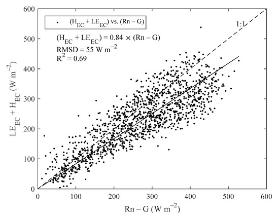 EC surface energy balance lack of closure based on a comparison between turbulence fluxes (LE + H) and available energy (Rn − G). RMSD, root mean square difference.