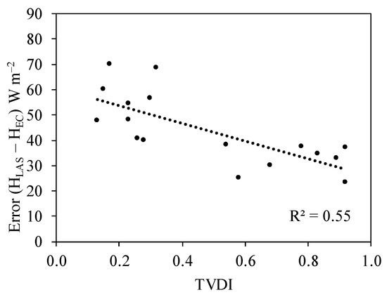 Comparison between the error in H (HLAS − HEC) and temperature vegetation dryness index (TVDI).