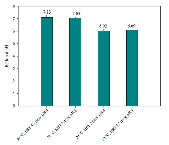 Figure 6. Average effluent pH at different conditions with an influent pH of 4.