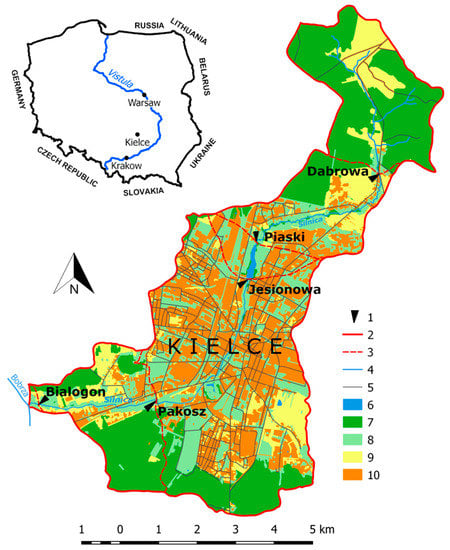 - Ciupa, T.; Suligowski, R.; Ciupa, S. Hydrological issues in the environment protection programme of the city of Kielce. Studia Miej. 2017, 28, 167–182. [Google Scholar] [CrossRef]