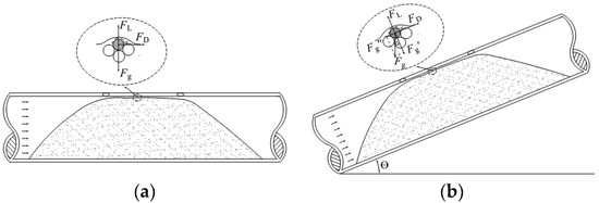 Figure 3. Force on particle from movement to sedimentation in a (a) horizontal tunnel and (b) inclined tunnel.
