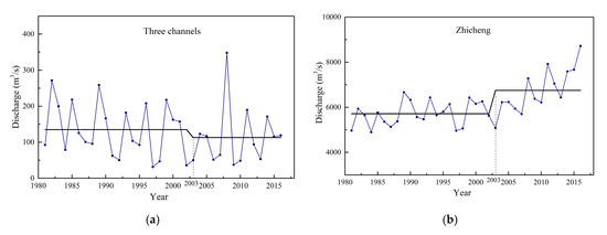 The long term change of the inflow from (a) “three channels” (b) Yangtze River (Zhicheng station).