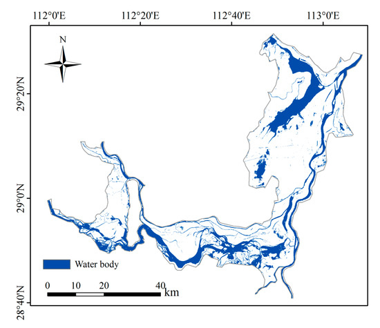 - Liang, J.; Cai, Q.; Guo, S.; Xie, G.; Li, X.; Huang, L.; Zeng, G.; Long, Y.; Wu, H. MODIS-based analysis of wetland area responses to hydrological processes in the Dongting Lake. Acta Ecol. Sin. 2012, 32, 6628–6635. (In Chinese) [Google Scholar] [CrossRef]