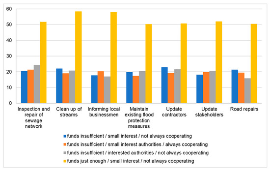 During the 1st stakeholder workshop of Rethymno [30], the participants were asked to identify several aspects of the decision making process, such as who needs to cooperate with whom and for what actions, which actions need to be implemented annually to prepare the city and which flood resilience measures are needed and are most probable to be implemented in the city of Rethymno.