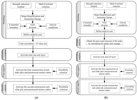 Modeling and calculation process flowchart. (a) Not consider seepage (b) Consider seepage.