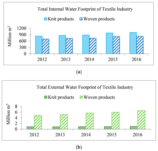 Total water footprint of textile industry (a) internal water footprint and (b) external water footprint.
