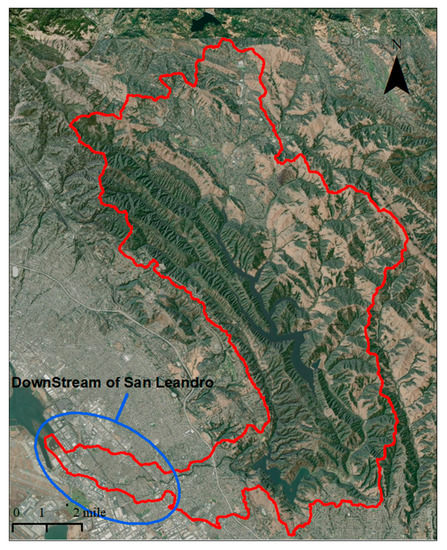 - Mariscal, A. San Leandro Creek Watershed. 2003. Available online: http://online.sfsu.edu/jerry/geo_642/studentProjects/2003/SanLeandroCreek/San%20Leandro%20Creek.Mariscal.pdf (accessed on 20 August 2020).