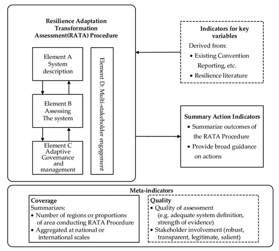 The resilience, adaptation, and transformation assessment and learning framework (RATALF) was developed in 2015 by the Commonwealth Scientific and Industrial Research Organization (CSIRO) in partnership with the Scientific and Technical Advisory Panel of the Global Environmental Facility (STAP/GEF) []. The framework leads users through a process of system description, assessing the system, and adaptive governance and management. The RATALF offered a structured approach to understanding and assessing resilience, and adaptive learning, so as to inform initiatives to build resilience of those social-ecological systems that contribute to agreed sustainability goals. The evaluation process of the RATALF evaluation system is resilient and repeatable [], that is, the RATALF is not a conclusive resilience evaluation system, but a process to discuss resilience evaluation. Moreover, in the practical application of theory, some countries and research institutions have issued a series of complete evaluation systems and work manuals [,,].