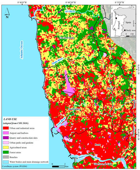 - Caetano, M.; Igreja, C.; Marcelino, F.; Costa, H. Estatísticas e Dinâmicas Territoriais Multiescala de Portugal Continental 1995–2007–2010 com Base na Carta de Uso e Ocupação do Solo (COS). Relatório Técnico. Direção-Geral do Território (DGT). 2017. Available online: http://www.dgterritorio.pt/ (accessed on 28 February 2019).
