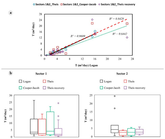 - Logan, J. Estimating transmissibility from routine production tests of water wells. Ground Water 1964, 2, 35–37. [Google Scholar] [CrossRef]