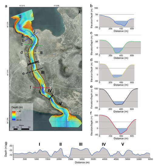 17] and multibeam-derived elevations of barriers within the drowned Novsko Ždrilo and Karinsko Ždrilo. The submerged canyon, Novigrad Sea, and the Zrmanja River are the three major elements that influenced the formation of the Holocene Zrmanja estuary and its geomorphology during the sea-level rise. An extensive literature review has shown very few examples of similar semi-enclosed marine environments or lakes, with most studies focusing on biota and habitat mapping [