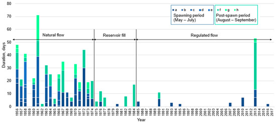 - Environmental releases should be implemented at least once every six to seven years. This frequency exceeds the frequency of large floods under natural water conditions, which have occurred once every 10–11 years. Given the reduction in flood magnitude, a reduction in the time span is a compensation measure aimed at preserving wetlands under flow regulation.