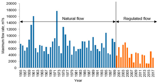 - Hydrograph of Water Levels and Flow Rates. Discharge Record of the Bureya Dam. Available online: http://hgraph.ru/burges (accessed on 23 July 2020).