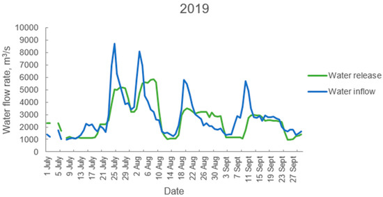 - Hydrograph of Water Levels and Flow Rates. Discharge Record of the Zeya Dam. Available online: http://hgraph.ru/zeyges (accessed on 23 July 2020).