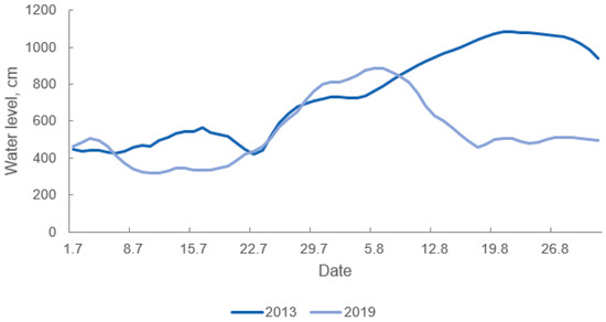 - Nikitina, O.I. Transformation of Water and Floodplain Ecosystems of the Middle Amur as a Result of Flow Regulation—Scientific Graduate Report; Water Problems Institute of the Russian Academy of Sciences: Moscow, Russia, 2018; p. 132. [Google Scholar]