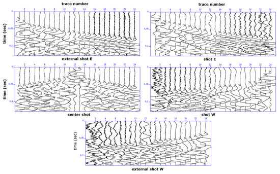 The seismic refraction data are generally shown to be of good quality, allowing accurate and reliable identification of the first arrival times. Figure 9 shows the seismograms of the seismic line C-C’ and respective picked travel-times.