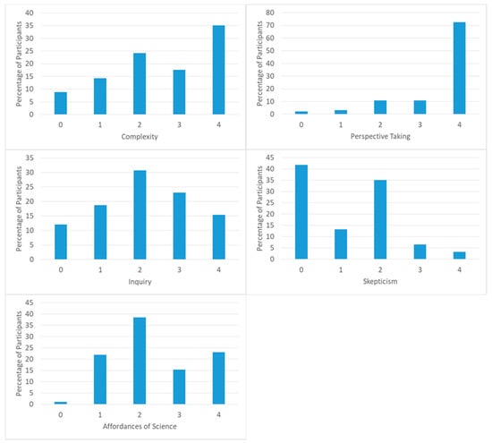 Lvl | Complexity | Perspective Taking | Inquiry | Skepticism | Affordance of Science |