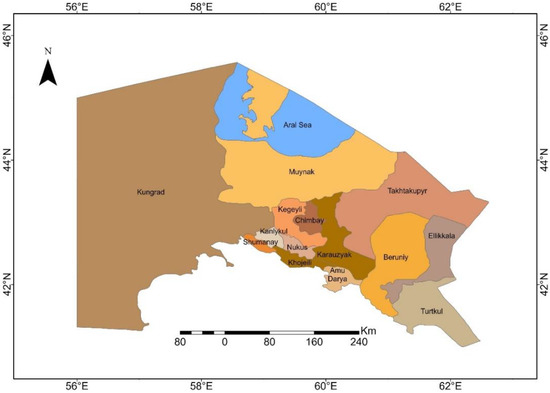 Administrative Map of Karakalpakstan.
