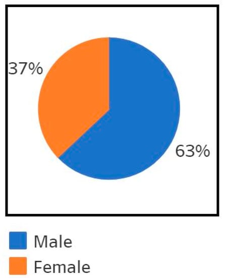 Gender information was reported for 483 (85%) of the vehicle-related flood fatalities in Storm Data. Males are almost twice as likely to die in vehicle-related flood accidents than females (63% to 37%), as seen in Figure 7. ANOVA test results showed that there was a difference between males and female, with p-values of less than 0.01. Although high, this male overrepresentation is lower than the 70% value reported by Jonkman and kelman [] and the 85% reported by Coates []. In Texas, Sharif et al. [] reported that male flood fatalities accounted for 68.4% of all fatalities. Kellar and Schmidlin [] found that 60% of all vehicle-related flood deaths that were recorded with gender information were male victims. Ahmed et al. (2018) reported that 66% of all the vehicle-related flood deaths were males []. They found that when the role of the victims in the vehicle was specified as driver or passenger, male victims accounted for 72% of all the driver victims and 57% of all the passenger victims []. Diakakis’ [] study reported a male-female ratio of 3.6 to 1. Unfortunately, Storm Data does not specify the driver in the vast majority of the incidents, but males are always more likely to be involved in risky behavior than females (e.g., []). Moreover, the presence of females in the vehicle, whether as a driver or passenger, was correlated with significantly lower accident risk []. Chen et al. [] demonstrated that the presence of a male as a driver or passenger in a vehicle almost doubles the likelihood/severity of an accident.