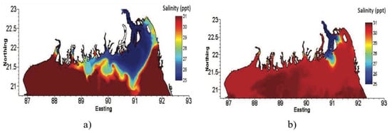 - Hussain, M.A.; Islam, A.K.M.S.; Hossain, M.A.; Hoque, T. Assessment of Salinity Distributions and Residual Currents at the Northern Bay of Bengal considering Climate Change Impacts. Int. J. Ocean Clim. Syst. 2012, 3, 173–186. [Google Scholar] [CrossRef][Green Version]