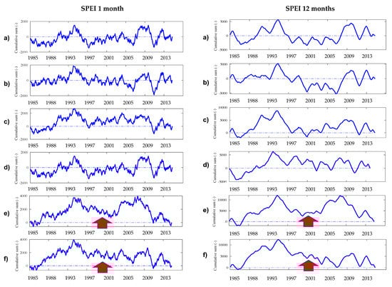 3.2. Detection of Abrupt Changes in Temporal Trends of SPI and SPEI within the Period 1984–2014