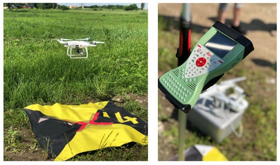 In order to georeference the UAV images, 12 GCPs (Ground Control points) were used (Figure 1), whose coordinates were determined using the Leica GS08 GNSS equipment. The processing of UAV images was performed with the AgiSoft PhotoScan Professional Edition program, version 1.2.2 (64 bit), where the GCPs were identified and marked in each image, manually, to achieve the most accurate georeferencing. Thus, it was found that the error of geroreferencing, using GCPs, respectively by checking them in the AutoCAD program, was between 2 and 4 cm.