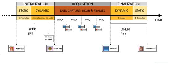 Instead, when scanning takes place indoors, indications must start and close outdoors. If this start/close procedure is not possible, an appropriate platform can be used to re-locate the MMS at exactly the same point, i.e., to guarantee the correspondence between the starting and ending points, namely a “forced” closed loop.