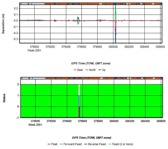 How long was it scanned without a GNSS signal or less than 5 satellites? This time without a GNSS signal or with a weak signal will be subject to compensation, provided that this interval is bigger than 0.5–1 min [,].