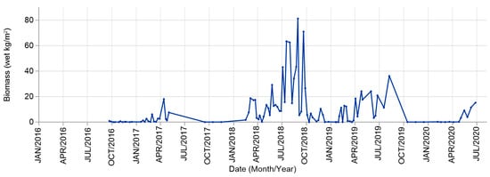 Biomass of beached sargasso on a short section of beach at Puerto Morelos (adapted from [8]).