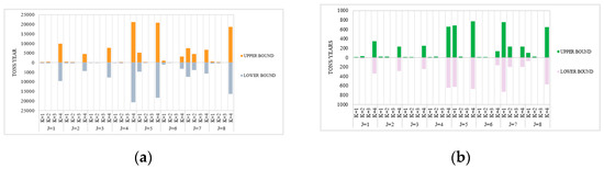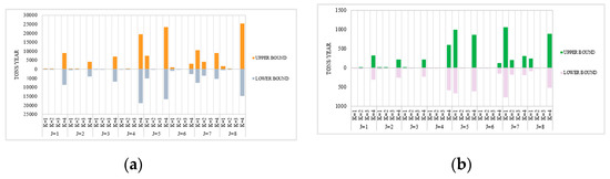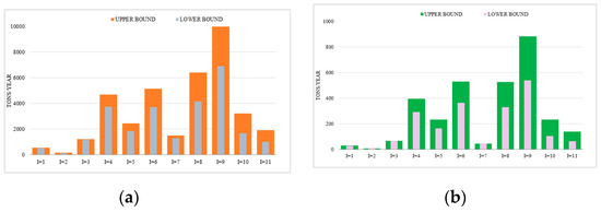 The range of the maximum total amount of pollutants in area during the period (tons/year).