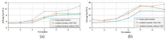 In R3, SAA increased from the value of 8.9 mg N/(g VSS∙h) in the 2nd test, while in the 7th test it was the highest and amounted to 26.3 mg N/(g VSS∙h).