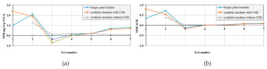 NPR in all batch reactors were the highest on the first days of the research (see Figure 3a). This is due to the fact that such low concentrations of NH4-N and NO2-N meant that the majority of processes occurred with full nitrification. This situation is also confirmed by the fact that with the addition of 0.5 and 1% LPD, the highest ratio of NPR/AUR was achieved (see: Figure 3b).