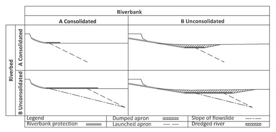 Comparison of riverbank protection designs for different geotechnical conditions.