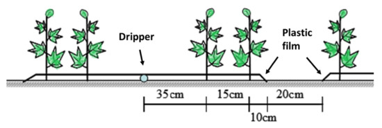 Layout of mulched drip irrigation technique in the cotton field.