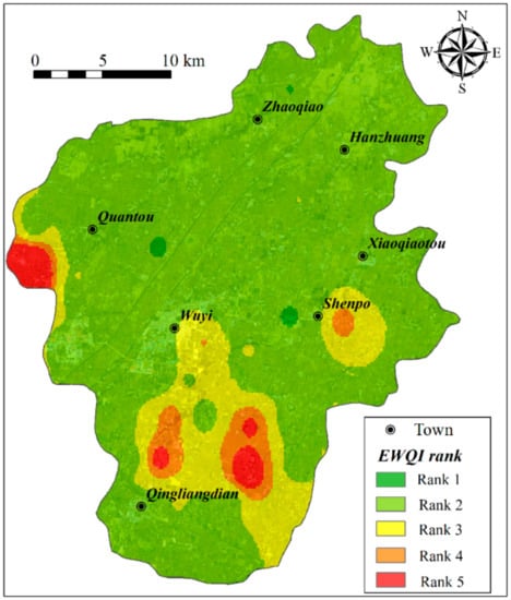 3.2.1. Groundwater Quality Assessment Based on EWQI