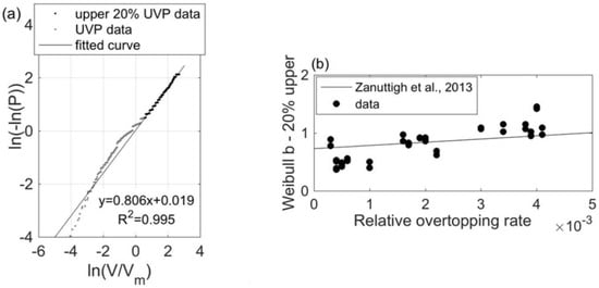 - Zanuttigh, B.; Van der Meer, J.W.; Bruce, T.; Hughes, S. Statistical characterisation of extreme overtopping wave volumes. In From Sea to Shore–Meeting the Challenges of the Sea: (Coasts, Marine Structures and Breakwaters 2013); ICE Publishing: Edinburgh, UK, 2014. [Google Scholar]